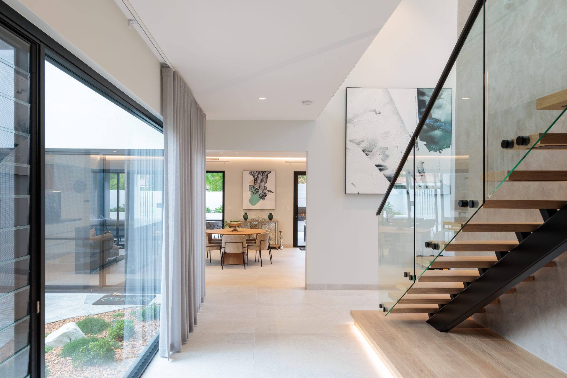 As the lighting designer for this remarkable home, our vision was to highlight its bold architecture while creating warmth and intimacy within its expansive spaces. The striking façade is accentuated with subtle striplighting, drawing attention to the home’s stunning architectural features. Inside, the central courtyard becomes the heart of the design—layered lighting enhances the openness while showcasing the floating timber staircase as a sculptural feature. Every room has been considered for both function and atmosphere, with seamless transitions between indoor and outdoor lighting that extend the living experience beyond the walls. The result is a home where light not only defines form but enriches the sense of luxury, flow, and modern family living.